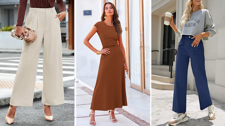 These high-waisted trousers come in professional neutrals and fun bright colors, making them a great option if you’re looking to brighten up your wardrobe. The flowy design features a wide-leg silhouette that is so comfortable and doesn’t cling to your figure. Whether you save these for the office or wear them to dinner you’ll feel instantly put together.