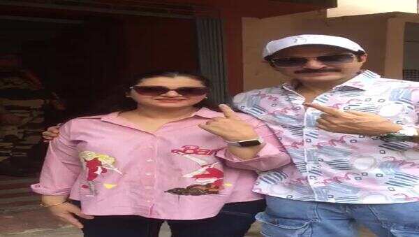 Jeet casts his vote with his wife Mohona