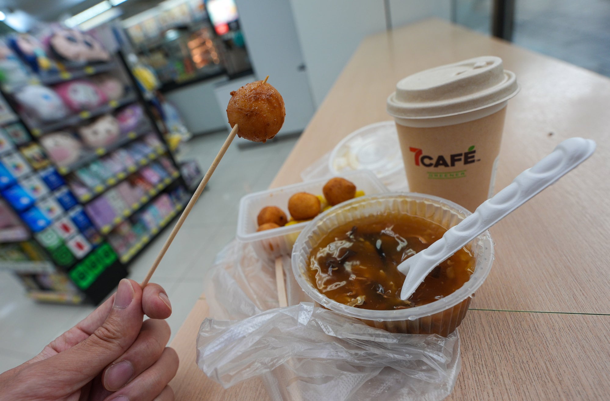 At a 7-Eleven on Matheson Street in Causeway Bay, no staff intervened after a reporter ordered siu mai – which also came in a plastic container – from the snack bar and ate them in the shop.